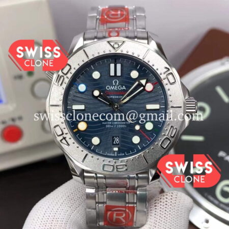 Omega Seamaster 300M Co-Axial Master Chronometer Blue Dial features premium 904L stainless steel, sapphire crystal glass, and a Swiss automatic movement. Our 1:1 super clone replica is crafted to match every detail of the original Omega timepiece.