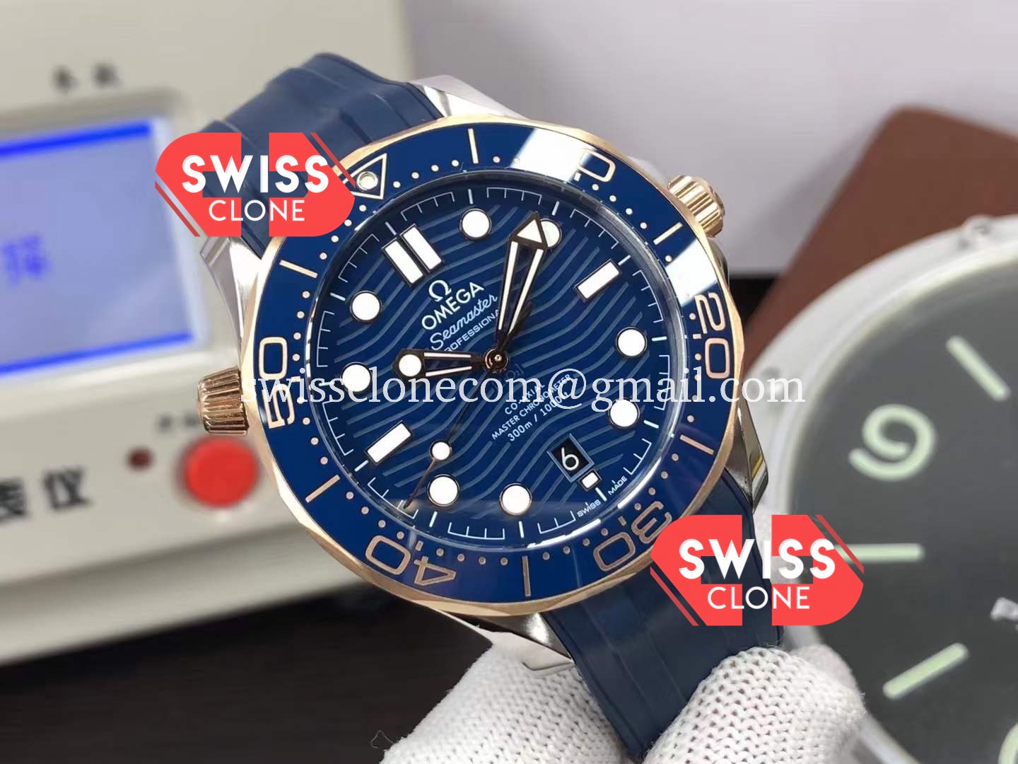 Omega Seamaster 300M Master Chronometer Blue Dial Rubber features premium 904L stainless steel, sapphire crystal glass, and a Swiss automatic movement. Our 1:1 super clone replica is crafted to match every detail of the original Omega timepiece.
