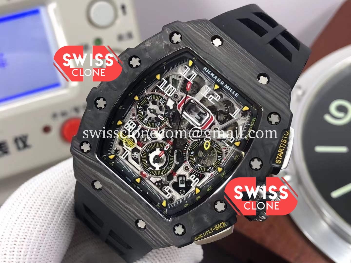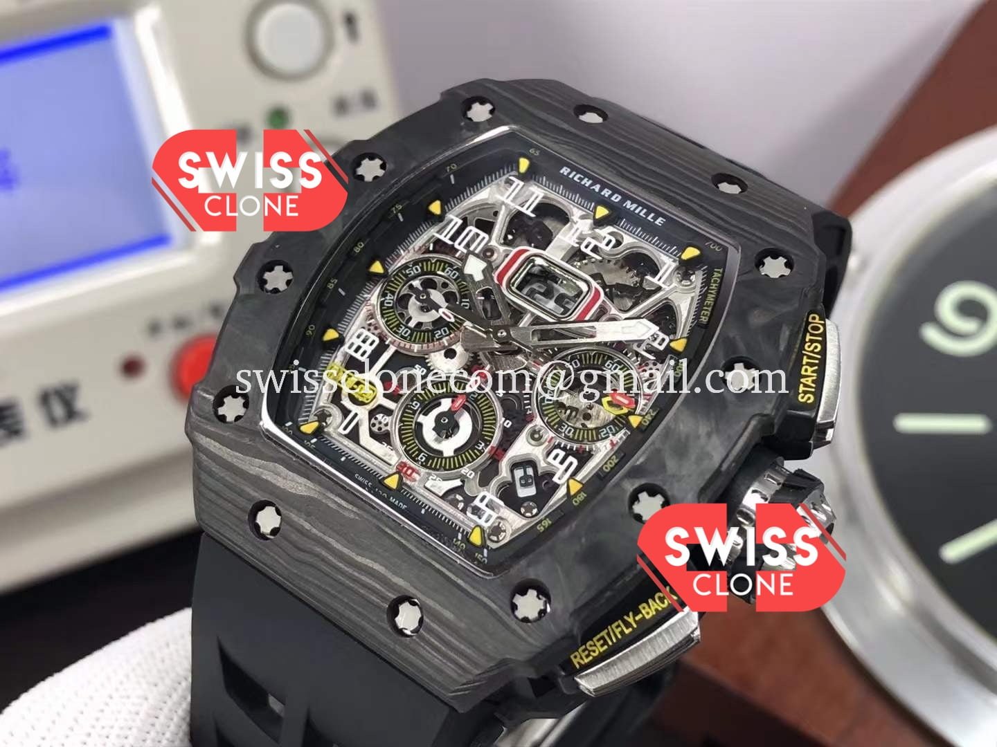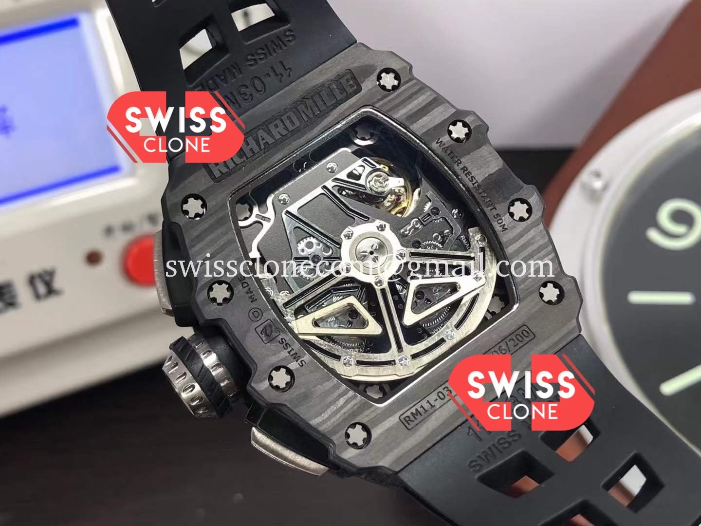 Richard Mille RM011 Felipe Massa Black Forged Carbon Case features premium 904L stainless steel, sapphire crystal glass, and a Swiss automatic movement. Our 1:1 super clone replica is crafted to match every detail of the original Richard Mille timepiece.