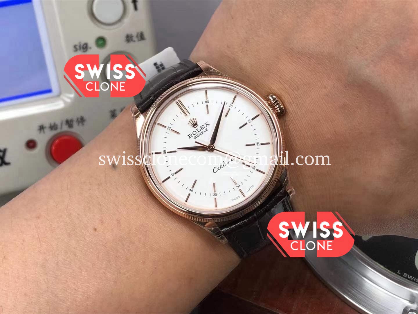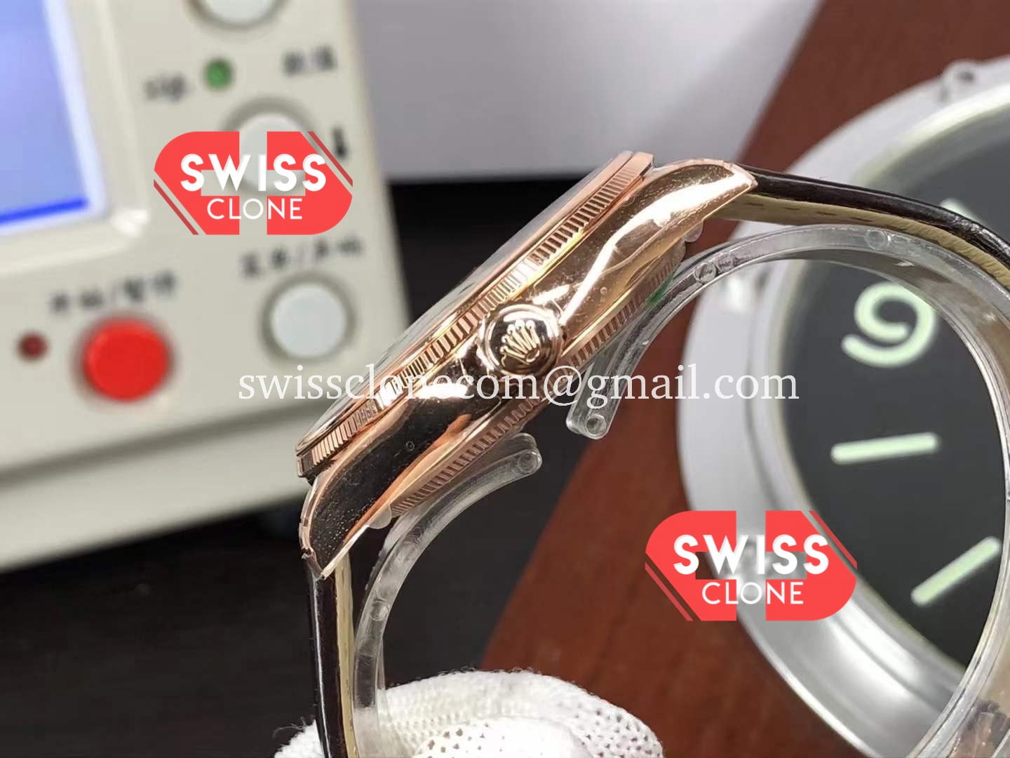 Rolex Cellini Time Ref 50509 Rose Gold features premium 904L stainless steel, sapphire crystal glass, and a Swiss automatic movement. Our 1:1 super clone replica is crafted to match every detail of the original Rolex timepiece.